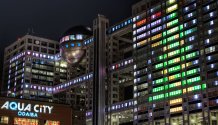 The building housing the Fuji Television network is located on Odaiba, the manmade island built off the mainland shore of Tokyo. Therefore, rather than standing inside the city and looking out, visitors to the observation deck there get the unique vantage point of being on the outside, and looking back at the metropolis. Not only do you get a prime view of the prettiest part of the city, but also the beautiful Rainbow Bridge and Tokyo Bay, which is always busy with boats and wind surfers. There are also a handful of other artificial islands in the area, as well.